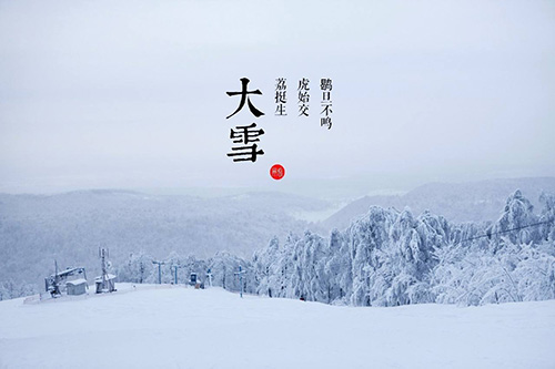 大雪時節(jié)有三候:"一候鹖鴠不鳴"意思是大雪交節(jié)之后,天氣寒冷,鹖鴠這種鳥便斂息摒聲,不再鳴叫。"二候虎始交"意識是此時是陰氣最盛時期,但盛極而衰,陽氣已有所萌動,老虎開始有求偶行為。"三候荔挺出"意思是"荔挺"是蘭草的一種,形式蒲草而較小,也感到陽氣的萌動而抽出新芽。